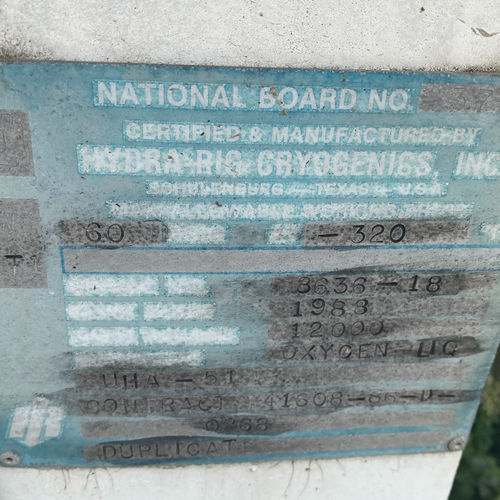 2000 Gal Skid Mount Oxygen/Nitrogen/Argon Tank